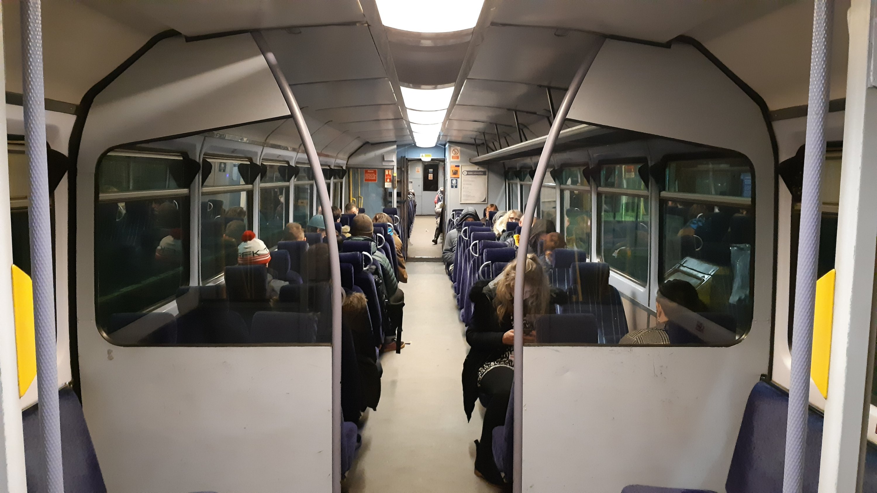The whistling and draughts were annoying enough to make me move into the centre car. It’s still freezing in here but it’s not as draughty! Our timekeeping’s not bad. We’re only 2 mins down departing from Todmorden so I’m cautiously optimistic. In the bay of seats behind me are two men complaining about the service Northern Rail have been providing. To say the TOC has an image problem is an understatement!