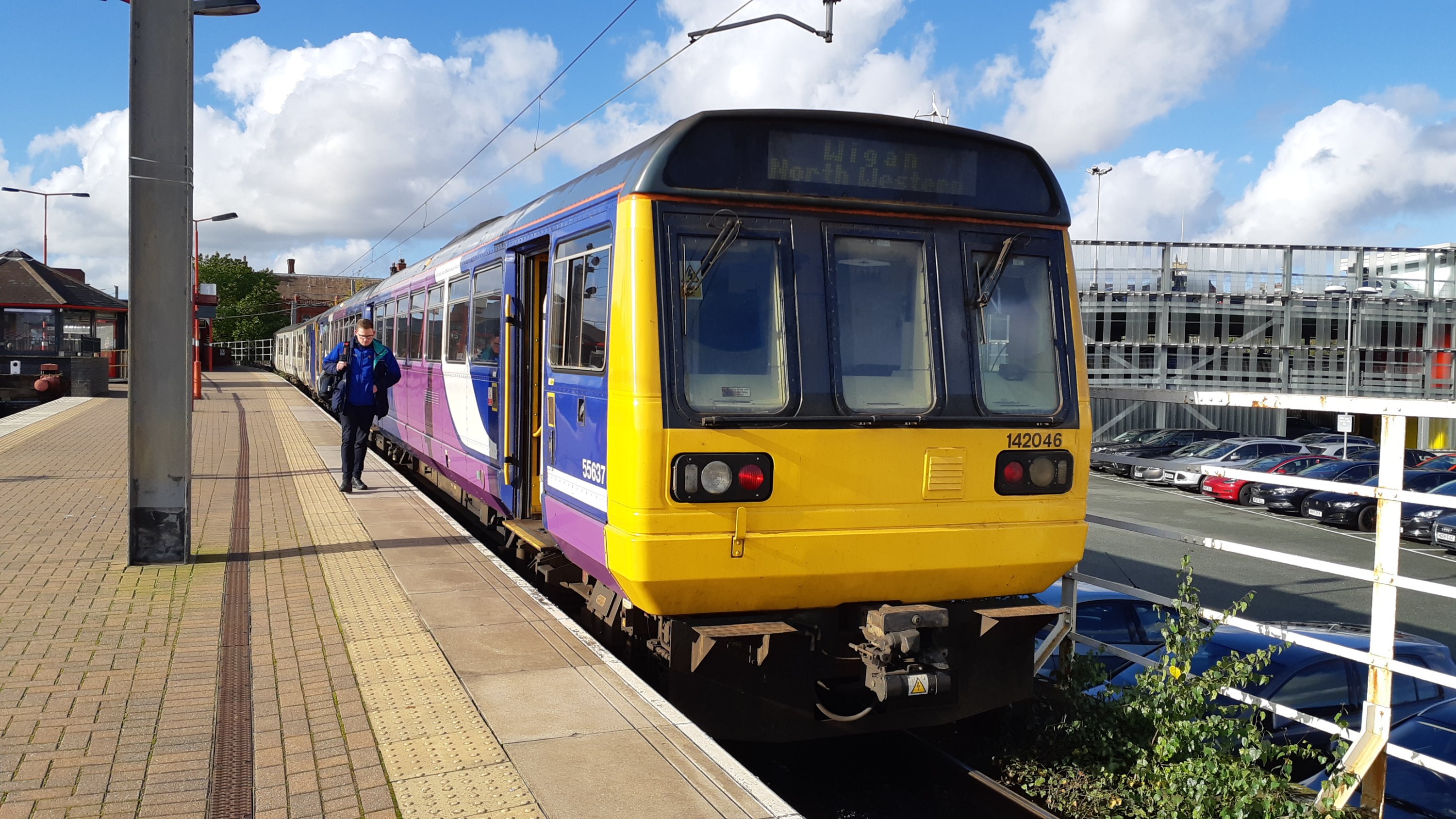As the weather changes, so do plans. The miserabke weather we’ve been having over the past few days has given way to sunshine and the opportunity to catch some outdoor shots, so Piccadilly’s been postponed. Instead I’ve been getting shots around Manchesters rapidly changing city skyline (pix will be added later). Right now i’m bouncing my way to Wigan aboard an ostensibly ‘stored’ Northern Pacer (142046 for the number crunchers) which has presumably been resurrected to make uo a stock shortage. No doubt the picture will soon change again. Next week the new Class 195s are due to take over Leeds-Chester services, which (in theory) allows more Pacers to bite the dust before the December deadline.