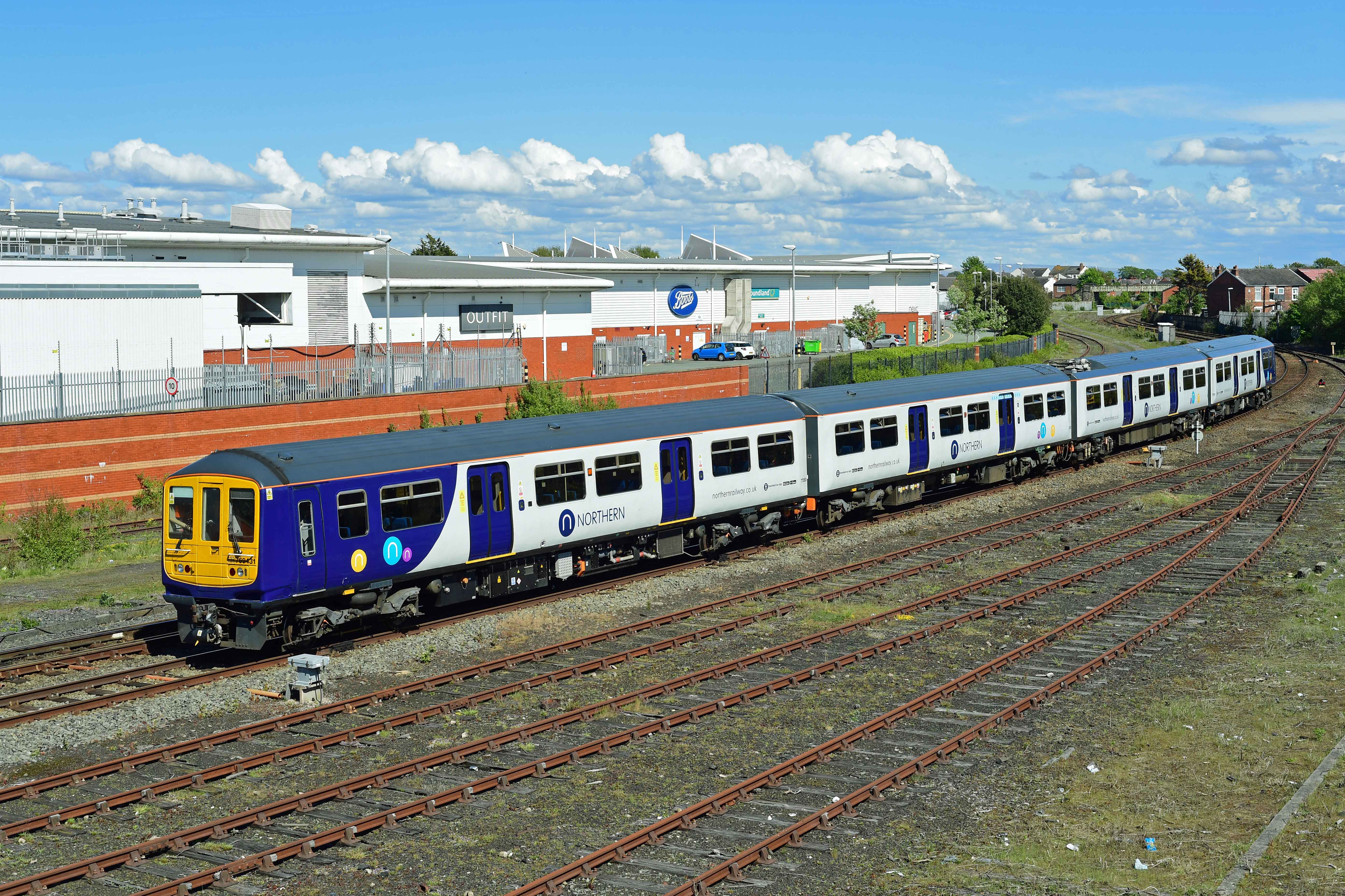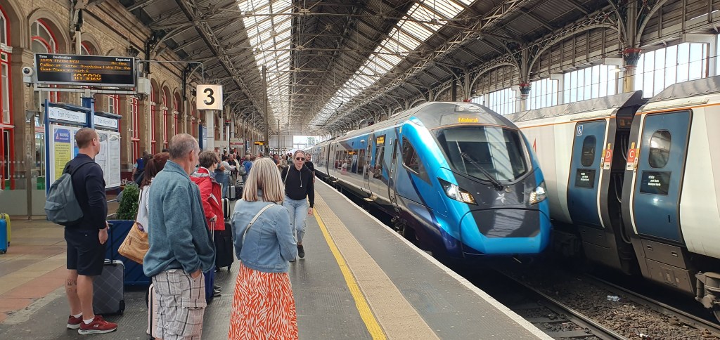 The mobile office (and Northern’s wifi) allowed me to establish that just two class 319s are in service right now. Both are on Manchester Airport – Blackpool North diagrams, one after the other. The weather over here in Lancashire is bright and sunny, leaving Preston in heavy shadows so I’m now Blackpool bound with the intention of catching the 319s on their way back from the Airport.