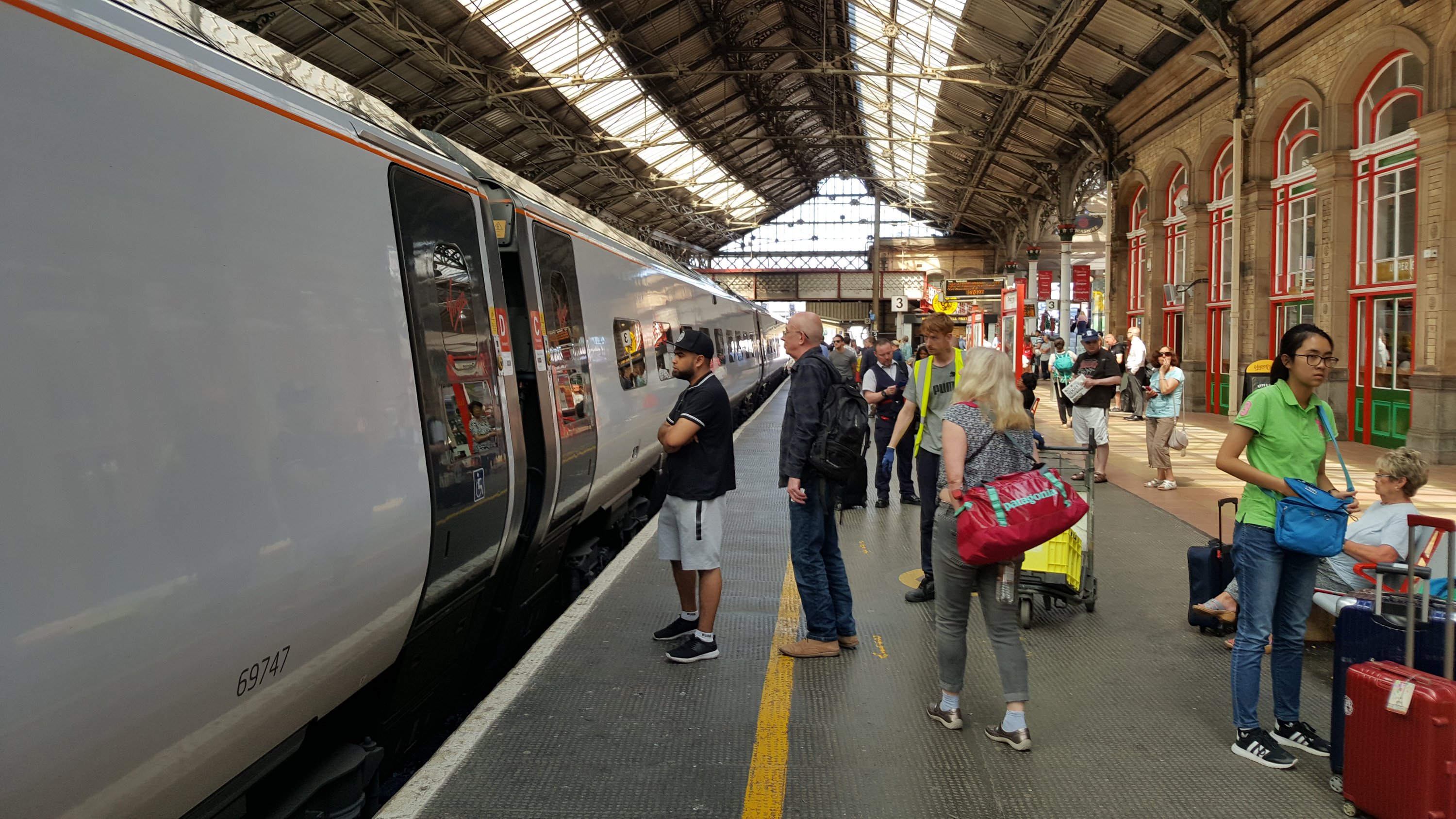 Due to disruption and late running with services via Victoria I’m taking the ‘scenic route’ via Salford Crescent where I picked up a very busy Northern Class 331 electric to get me to Manchester Piccadilly where I’ll connect with a Newcastle bound TPE service to Stalybridge. Here it is, worked by 802213.