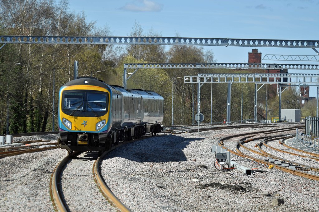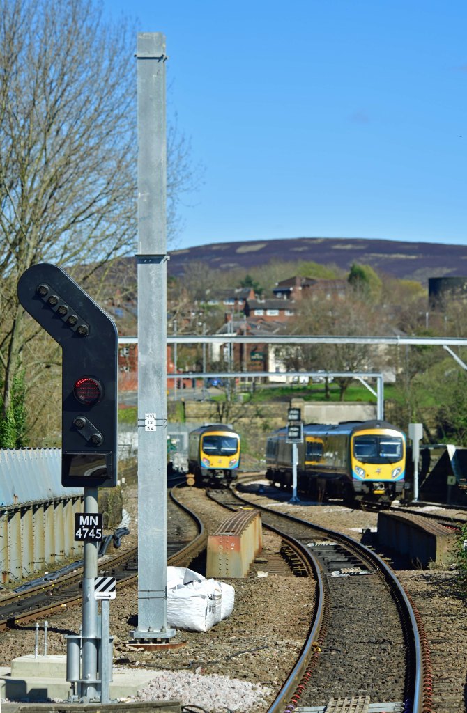 On the move again! The trip to Stalybridge via Guide Bridge was interesting as it allowed me to glimpse the work done on the curve between the two. The chord’s now full of TTLs (two-track cantilevers) waiting to be fitted out and the wires added. The irony? This section of track was originally electrified as part of the 1500v DC Woodhead line scheme from the 1950s and some of the original lighweight masts survive – although not for much longer.