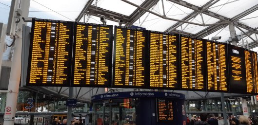 I’ve just arrived at Manchester Piccadilly after walking across from Victoria – and those white numbers don’t tell a happy story. They’re delayed trains.
