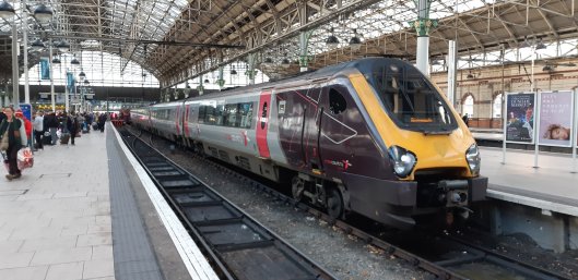 It’s one of those days. My train failed at Macclesfield! One of the doors refused to close again despite the best efforts of the crew and other helpers, so we were told to detrain and catch the Bournemouth XC service that pulled in alongside us! Here’s some pictures of the fun!