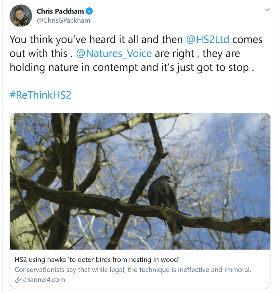 Needless to say, it wasn’t long before arch HS2 critic Chris Packham piled in in his own unthinking fashion with this tweet.