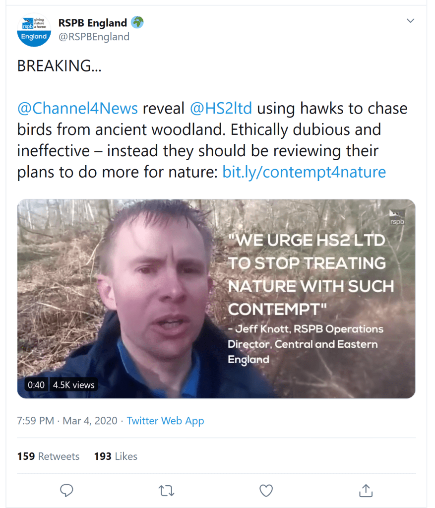 Holding nature in ‘contempt’ by using birds to scare off birds? Talk about mental gymnastics! The sad thing is that knee-jerk rubbish like this only makes it easier for people to dismiss environmental groups as cranks. It gives ammunition to the opposition, nothing more, but nothing that Packham comes out with surprises me anymore. Let’s face it, a man who flies people half-way around the world on expensive bird-watching tours of the Gambia (for which he earns a pretty penny) trying to stop people in the UK from being able to travel on a carbon-neutral railway is the height of hypocrisy.
