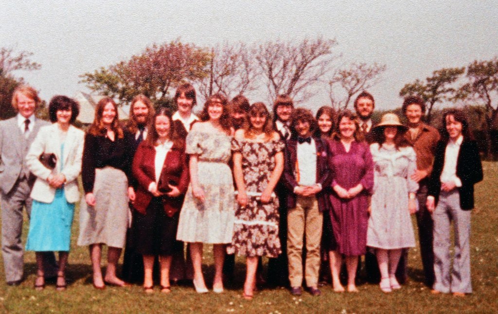 Some of the crowd from the Old Ship seen on the 17th May 1982 when we’d been to the wedding of Sparks and Vicky. It’s an awful photo, but Mike is at the front, sporting a bow-tie and blazer. 2nd to his left is my late sister, Ruth. I’m second from the end on the right.