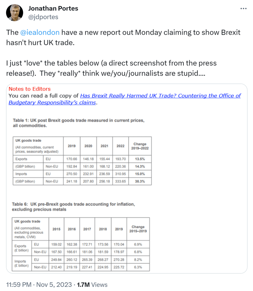 It took the likes of Johnathon Portes, Professor of Economics, King’s College London to expose the IEA’s lie on Twitter (Sod off Elon, I’m not calling it X).