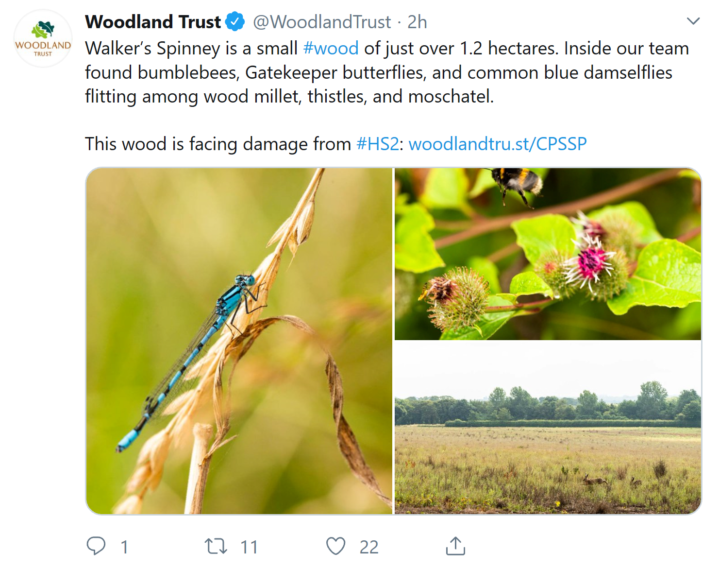 When I’ve challenged the WT on their opposition to HS2 they’ve come over all pained and said that they don’t object to HS2 ‘in principle’ – only in practise! Frankly, this hypocritical stance doesn’t fool anyone. They want to see HS2 delayed, or cancelled, as their latest campaign makes clear. According to them “Any transport system that destroys irreplaceable habitats such as ancient woodland can never be called ‘green'”.