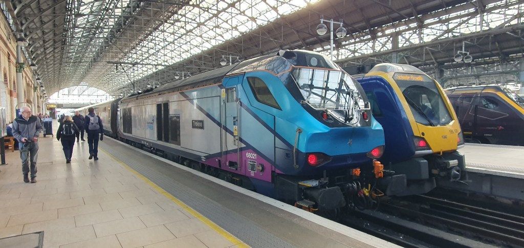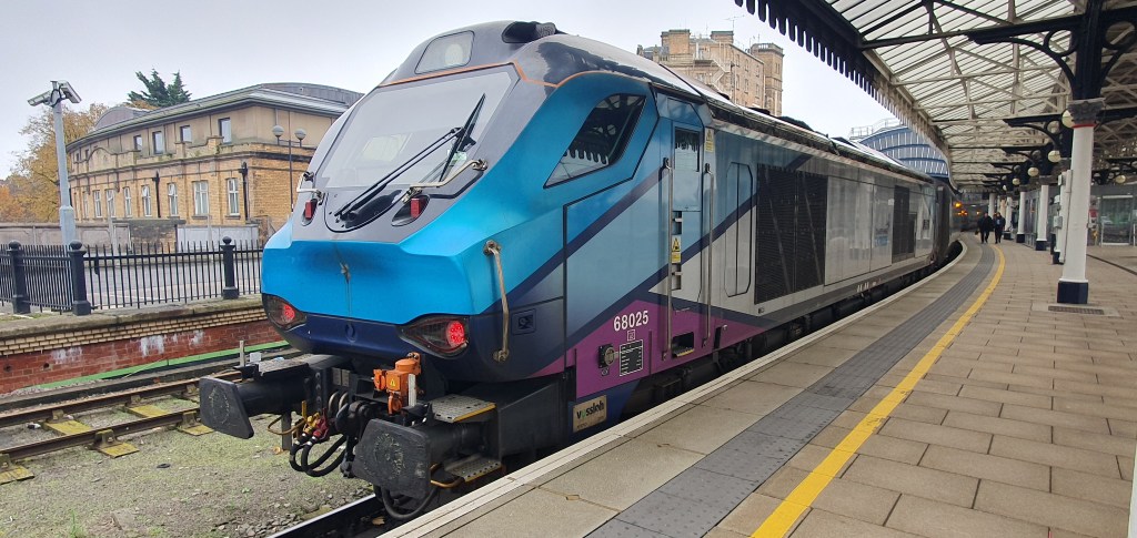 Hopefully, I’ll be out and about again soon, as there’s plenty of changes on the rail network to report on if nothing else – especially in this neck of the woods where the Trans-Pennine Route Upgrade (TRU) is ramping up. Plus, there’s the December timetable change which will see some trains disappear – like the Trans-Pennine Express Class 68s and Mk5 coaches. I hope to get a few more shots of them before they do. Today’s picture is of my last opportunity to see (and ride) behind members of the fleet. Here’s 68024 ‘Centaur’ at Manchester Piccadilly on the 7th November after arriving with 1U52, the 12:48 from Scarborough.