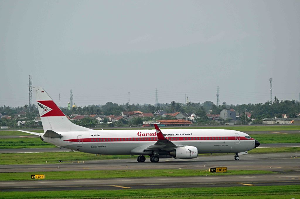 Yes, that is a small child stood in the middle of the tracks waiting for a train to pass outside Duri station! Trespass is endemic on railways in SE Asia (including Indonesia) but then many railways have shanty towns backing onto the tracks which people then use as their backyards. The train itself is an ex-Japanese Class 205 set. Introduced in 1985, the 205 series were used on both JR East and JR West lines. 524 205–0 series vehicles were shipped to Jakarta between 2013 and 2020. They form the backbone of the capital’s suburban train fleet. Garuda Indonesia Boeing 737-800 number PK-GFM seen at Jakarta’s Soekarno Hatta airport on the 3rd February. The aircraft has been repainted into a retro livery which was used by Garuda in the 1960s.