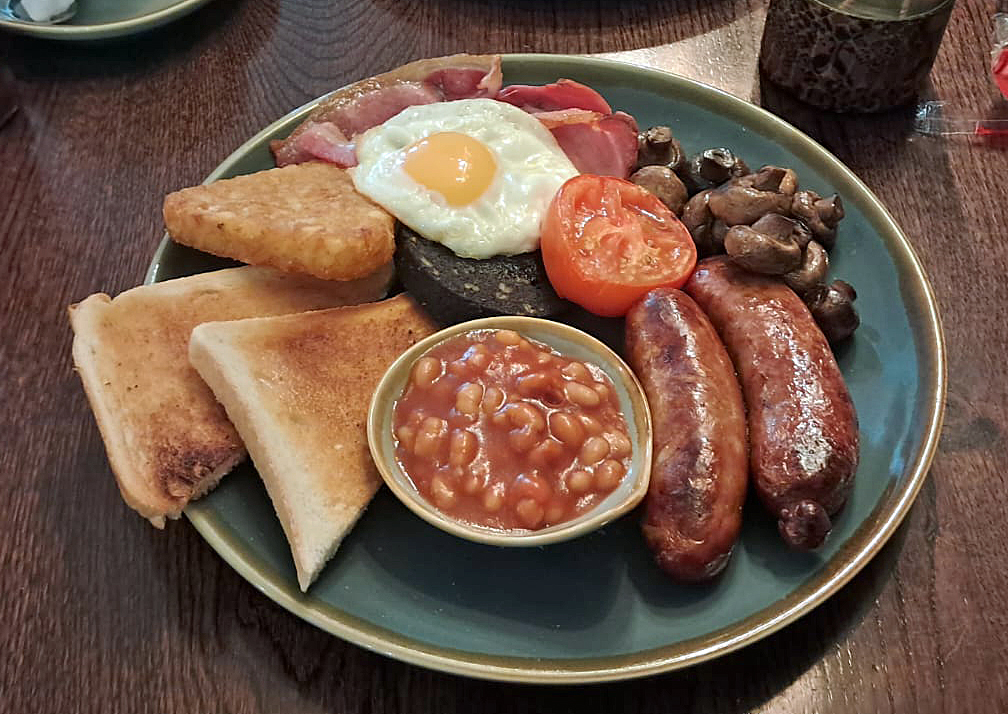 The pair of us have had a really good day rediscovering Chester. Despite the weather not being as good as billed (hey, at least it didn’t rain) we’ve covered a lot of ground, which started with us working off breakfast by walking along the Shropshire Union canal from our hotel into the city centre. Let’s face it, after a huge breakfast like this, is it any wonder it needed working off?