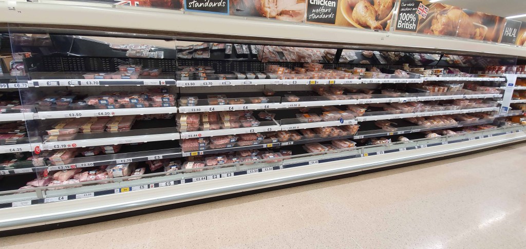 It’s not just fruit and veg either. Here’s the meat isle. Notice the gaps and low stocks.