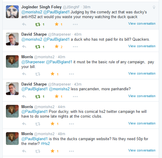 I can’t help laughing at a campaign this inept. They’re spending all their time re-running the same tactics that failed to stop Hs2 phase 1 – as if it’s suddenly going to work second time around. The way they’ve woefully misunderstood how social media works is rather amusing too. A few folk shouting at each other on Twitter was never going to change anything. Leary has added his own unique contribution by not understanding how hashtags work, which means his multiple tweets are reminiscent of the comedian Norman Collier. His routine was based around someone talking into an intermittent microphone!