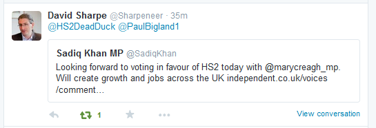 Quite what Crewe, which is on a completely different leg of Hs2 to Measham has to do with “our communities” is a mystery – as is how advertising that the number of folk engaging with your tweets is tiny will persuade anyone to take you seriously! Still, I’m sure the people who follow him (hardly any of whom live in the Measham area) will be inundating the Phase 2 Hybrid Committee with petitions to get the Leicestershire route of Hs2 changed. Or perhaps not. Here’s some of his 70 followers…