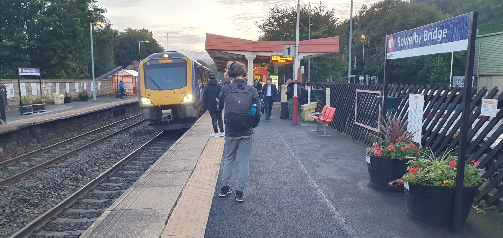 Well, there’s been some spectacular skies this morning thanks to low sun and broken cloud reflecting the light, but after that things started falling apart. My first train of the day is a Grand Central service from Halifax to Wakefield Kirkgate where I have a four minute cross platform connection with a train to Sheffield. There’s just one problem. GC left Bradford 3 minutes late and left Halifax 5 minutes late – and we haven’t stopped at Brighouse or Mirfield yet! Now, in theory – we may be able to pull a minute or so back as timings on this section are pedestrian at best, but I’m not optimistic…