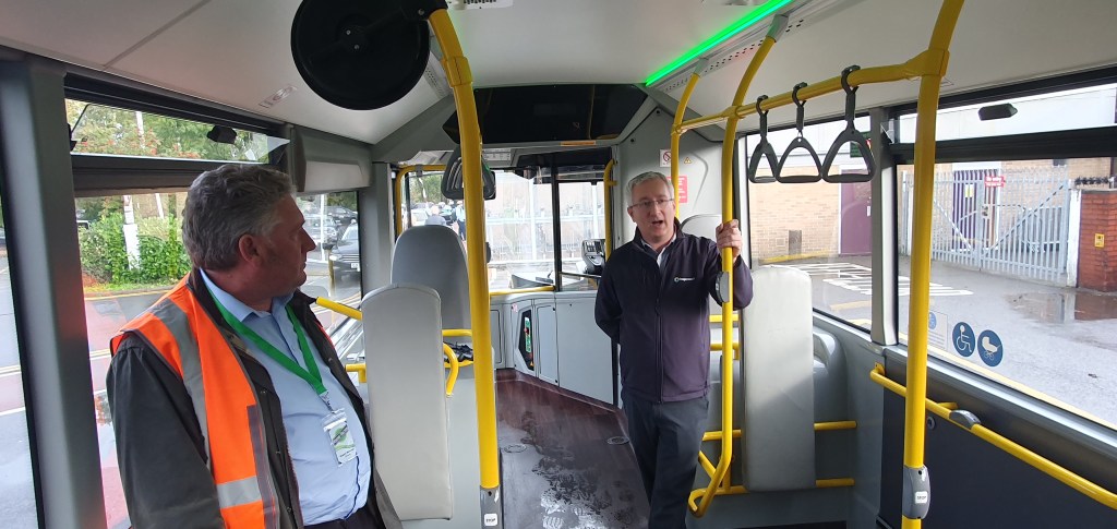 Impressive! Stagecoach’s Matt Kitchen in co-operation with Volvo have supplied an electric bus to get us to Barrow Hill.