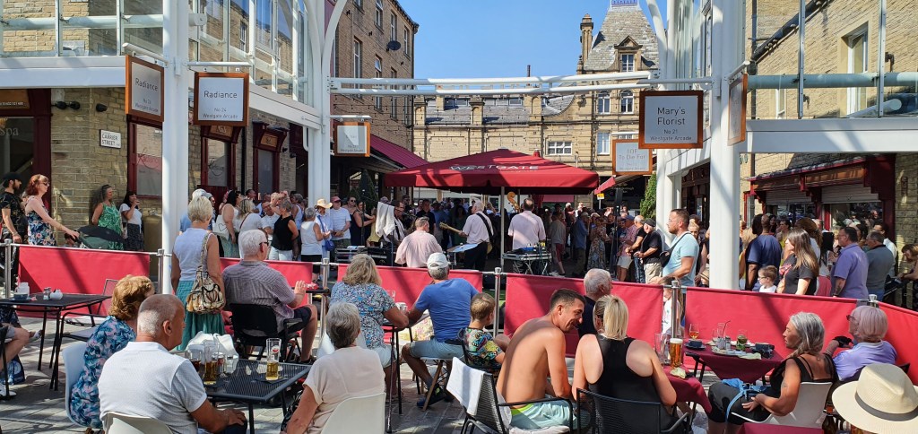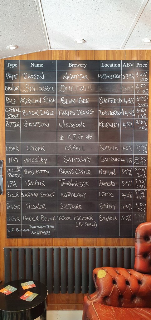 Today was more of an Easter celebration. Dawn was up early as she was helping her parents who had to come over to Calderdale in order that her mum could see some hospital specialists. I won’t go into details (it was nothing to worry about) but the plan was that after all it was over the four of us would go into Halifax for a late lunch at a place called ‘La Luna’ – an establishment where Dee and I have often enjoyed brunch. Maybe because it’s Easter or maybe because the weather had picked up, but Halifax was buzzing. The Piece Hall was hosting a variety of artisan market stalls which were drawing in the crowds – as we found out when we walked to and from the restaurant. There’s no doubt the town’s fortunes as a tourist destination are on the up so I was glad I’d booked our table at La Luna in advance as it became very busy after we arrived. La Luna’s in an excellent location only a few minutes from the Piece Hall. The restaurant’s well-designed with plenty of room and lots of attentive and friendly staff. Funnily enough, us two couples ordered the same food. Dawn and I went for the lamb kofta whilst John and Norah (being gluten free) both ordered the sea bass risotto. All four of us enjoyed our meals although we struggled to finish them. Admittedly, the fact chunky chips were supplied as part of the deal didn’t help – other than as a carb overload!