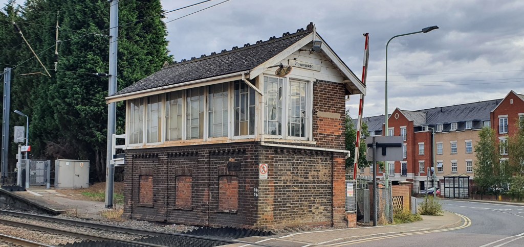 I swapped trains yet again at Stowmarket, mainly for one purpose. I’ve always had an interest in railway architecture in general but signalboxes in particular and I’ve never managed a picture of the abandoned example at Stowmarket until now.
