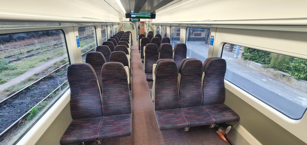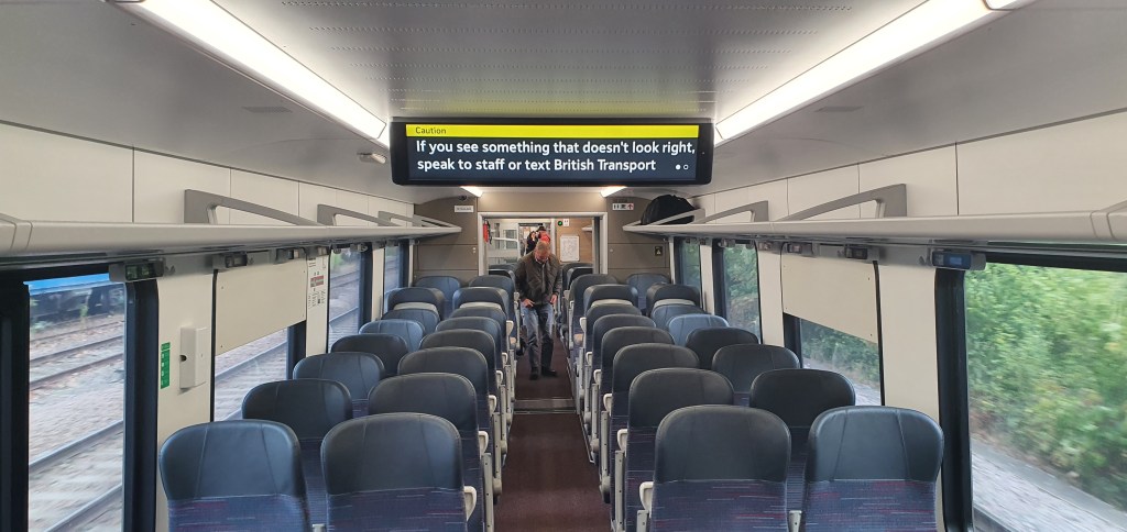All’s well that ends well. Whilst we’ve picked up a load more passengers at both Wakefield and Doncaster no-one came forward to claim my table. Now we’ve just left Newark so it looks like I should be safe as far as my destination – Peterborough – as there’s plenty of spare capacity. I note from the news that people have been told not to travel to London to join the crowds queuing to pay their last respects to the Queen, so I don’t expect to encounter anyone on any of my trains today.