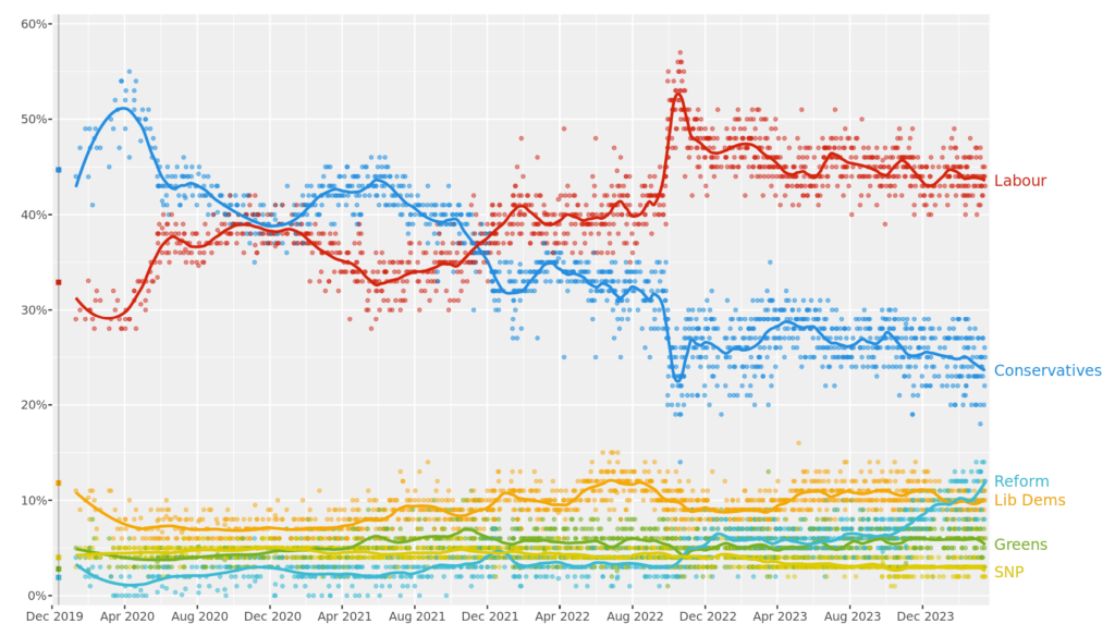 This presents a problem for the Tories. They’re in freefall at the moment, having been relegated to fourth (behind the Lib-Dems) in a recent poll. Sure, Reform are surging (taking over the Tories) but the cracks are already showing now they’re making a dismal start in running local councils they’ve taken control of (but that’s another blog). If a week is a long time in politics then the four years until the next general election is a lifetime! There’s plenty of time for Labour to find its political and economic feet and the signs that it will are there – they’re just drowned out by a media fixated on giving air-time to Reform.