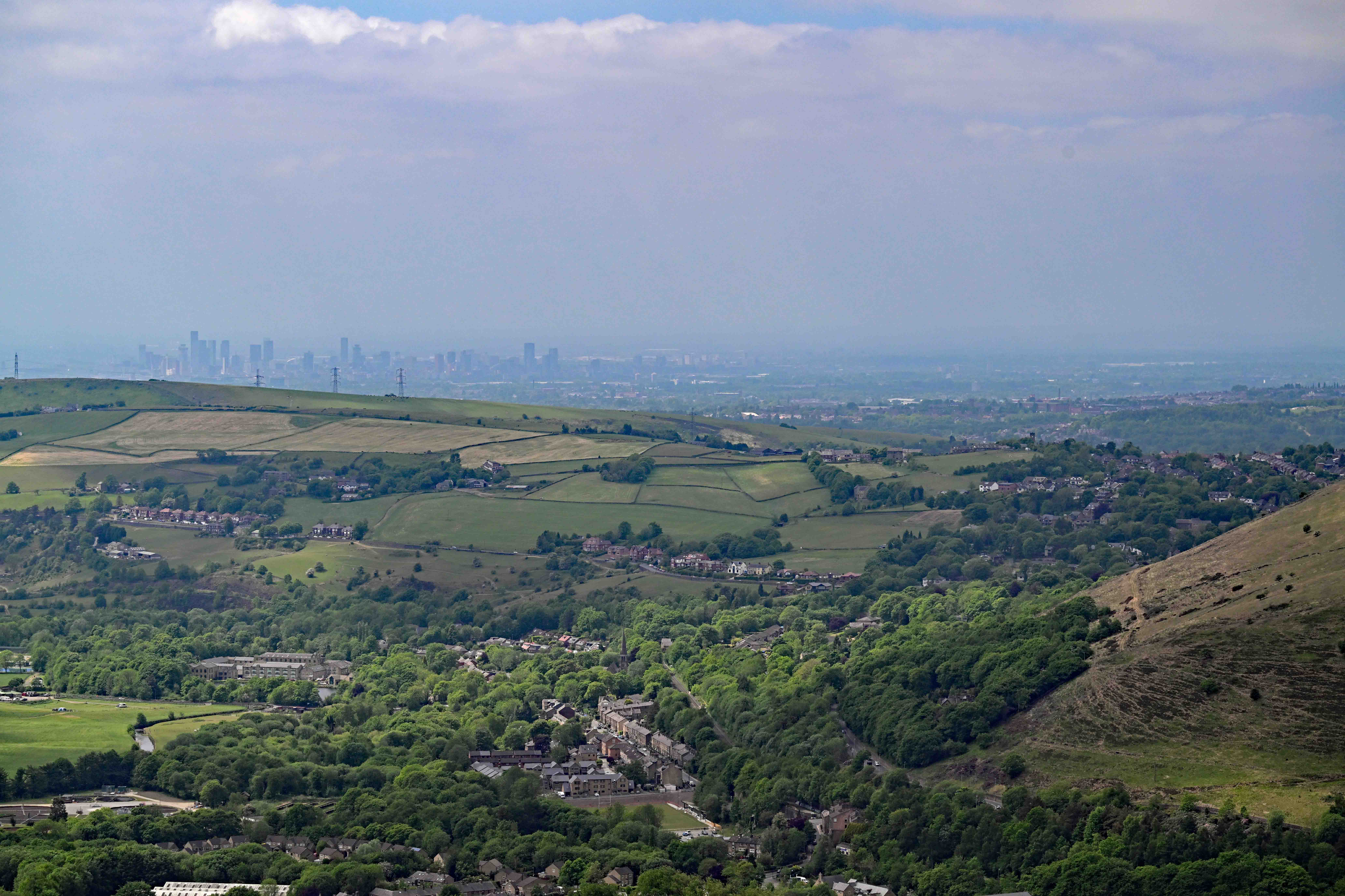 In the meantime, here’s today’s picture. At the weekend the pair of us crossed the border in Greater Manchester to visit a place I’d often wanted to walk to, ‘pots and pans’ on the hill above Greenfield. As well as interesting rock formations and a WW1 memorial, the hill offers some fantastic views. Sadly, the weather was a bit hazy when we visited, but the views were still worth it.