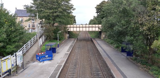 After heading back into and across Manchester the same way I came I’m now on Northern’s 18:21 from Manchester Victoria to Sowerby Bridge. As it’s a 3-car and today is ‘POETS day’ (Piss-Off Early, Tomorrow’s Saturday) my trains neither crowded nor the passengers stressed. That said, I feel sympathy for train crew working this evening as many stations are awash with folk on their way out and expecting to have a good time, as the amount of empty bottles & cans they’ve left behind attest to!