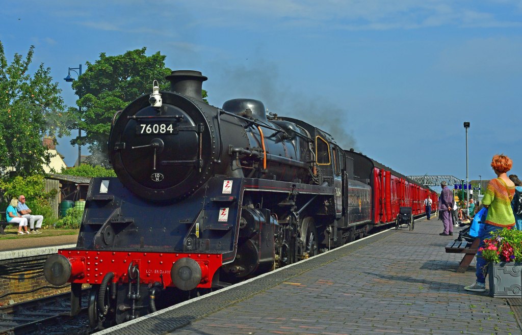 The end of the day. There’s so much more I could write about our travels as we went on to explore the Norfolk broads but I’m meant to be on holiday! Instead, I’ll leave you with a final picture from Hoveton and Wroxham on the Bure Valley Railway as one of their services arrives at the end of the line – just as a freight train heading for North Walsham passes on the main line. If only one had been earlier and the other later…