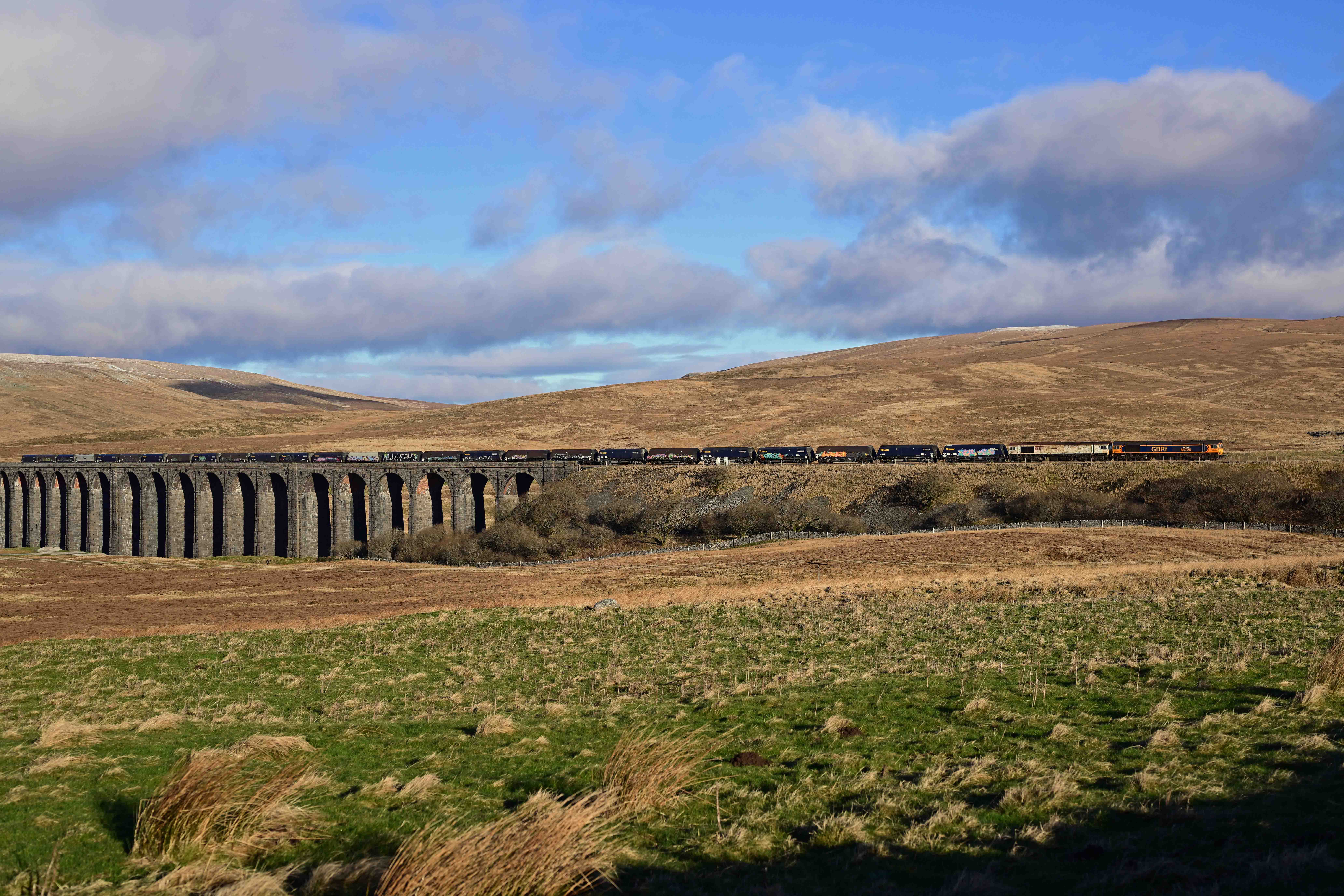 I made it in plenty of time to catch the trains I wanted to get pictures of. Mainly because they were all running late! That’s given me plenty of time to wander and freeze in the Baltic conditions that prevail here at Ribblehead. Snow sits on the tops, leaving the moss free but freezing. Now I’m having a quick warm and coffee in the local pub before heading out to get a few more pictures like this – incoming clouds permitting…