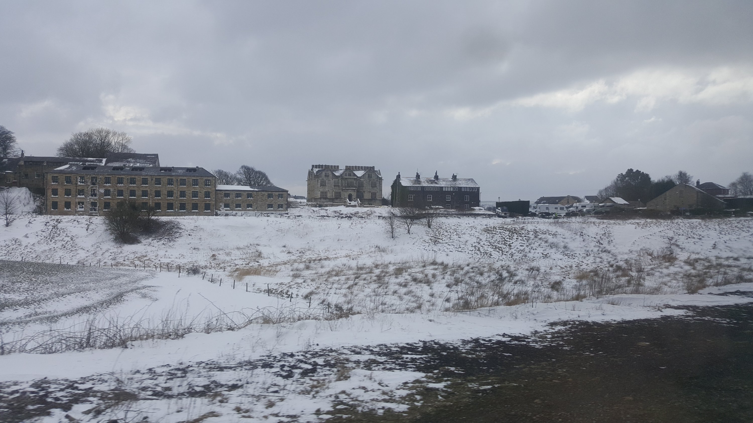 Calder Valley services are running with a few cancellations and delays. I’m on the delayed 10:27 which left Halifax at 10:50. The irony of taking this route is that I’m following my cycle training course to Rochdale. I’m glad i’m in a warm DMU as it looks perishing outside!