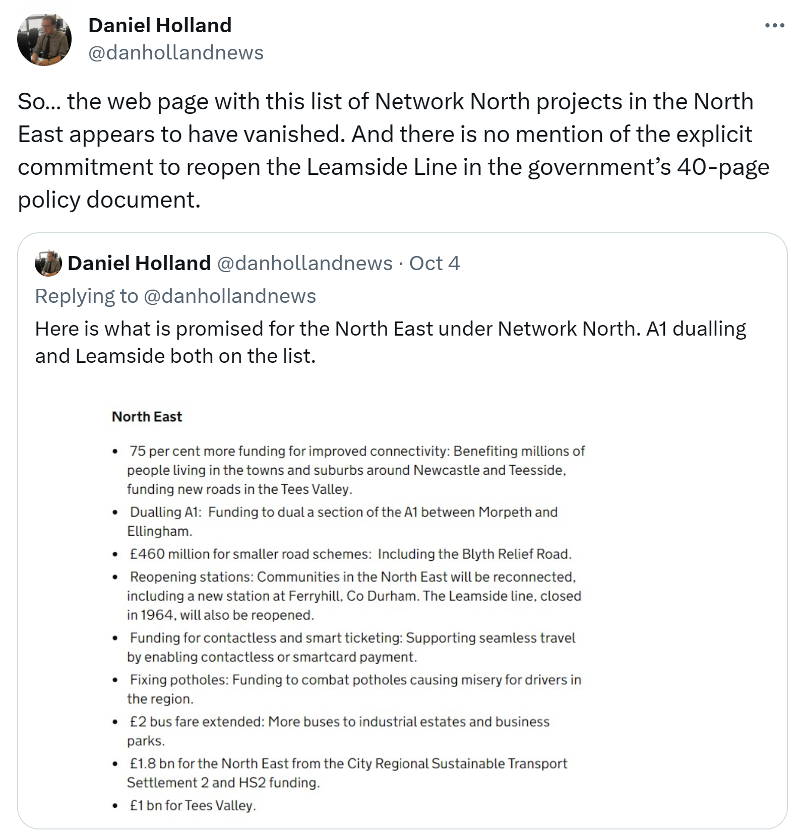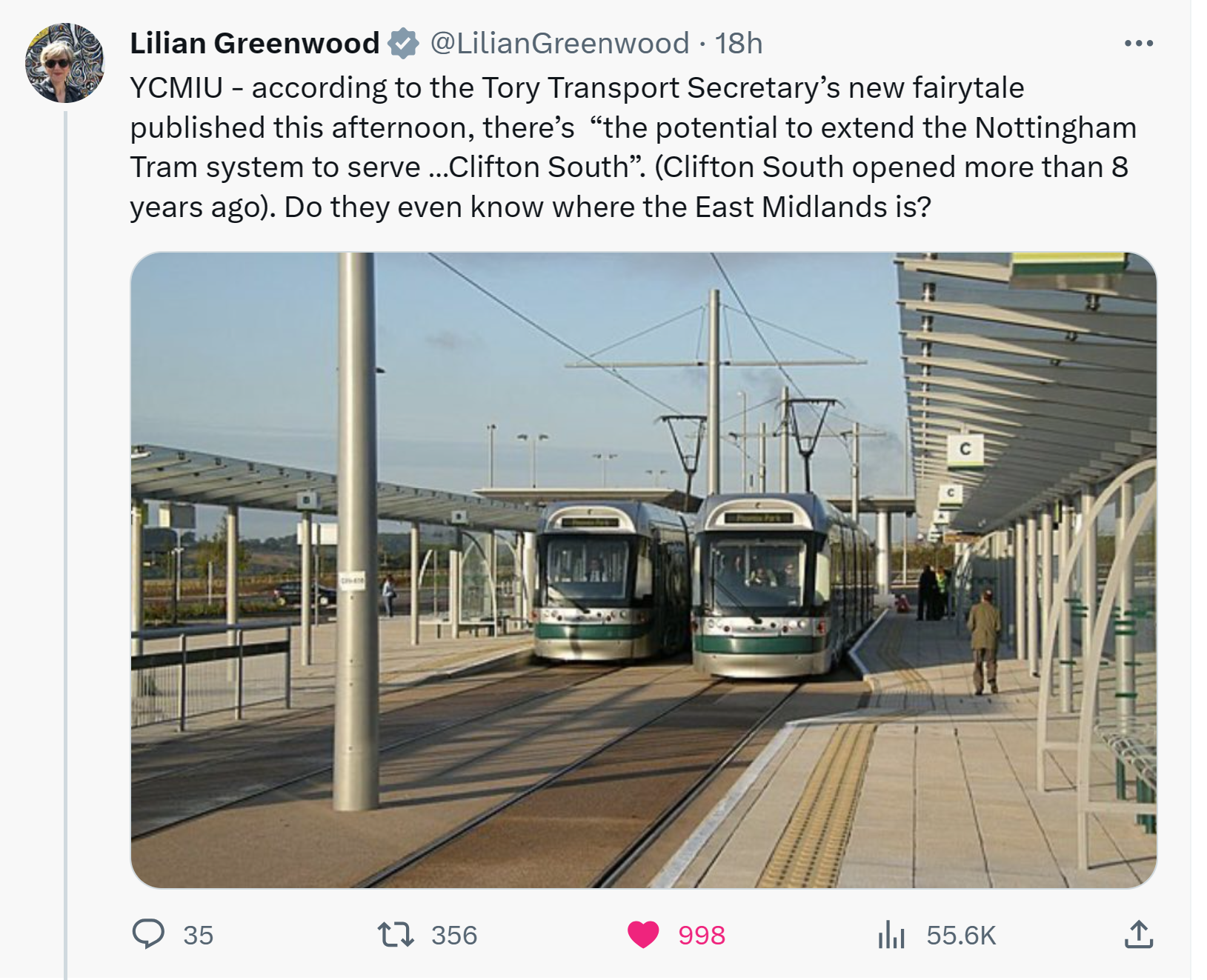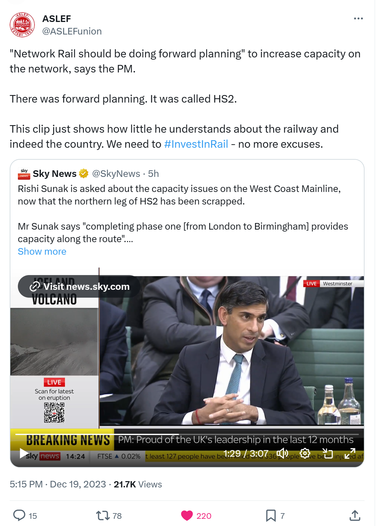 Sunak then on the make the outrageous claim that the bit of HS2 he hasn’t cancelled ‘triples’ capacity on the West Coast Main Line (WCML) which is a blatant lie – especially as Sunak’s done his best to make sure HS2 doesn’t get to Euston! There’s not one iota of factual evidence anywhere to substantiate that claim, but that’s classic Sunak. Say something that isn’t true then claim it was your ‘recollection’ (or not, if you’re denying something) – and the truth and facts be damned.