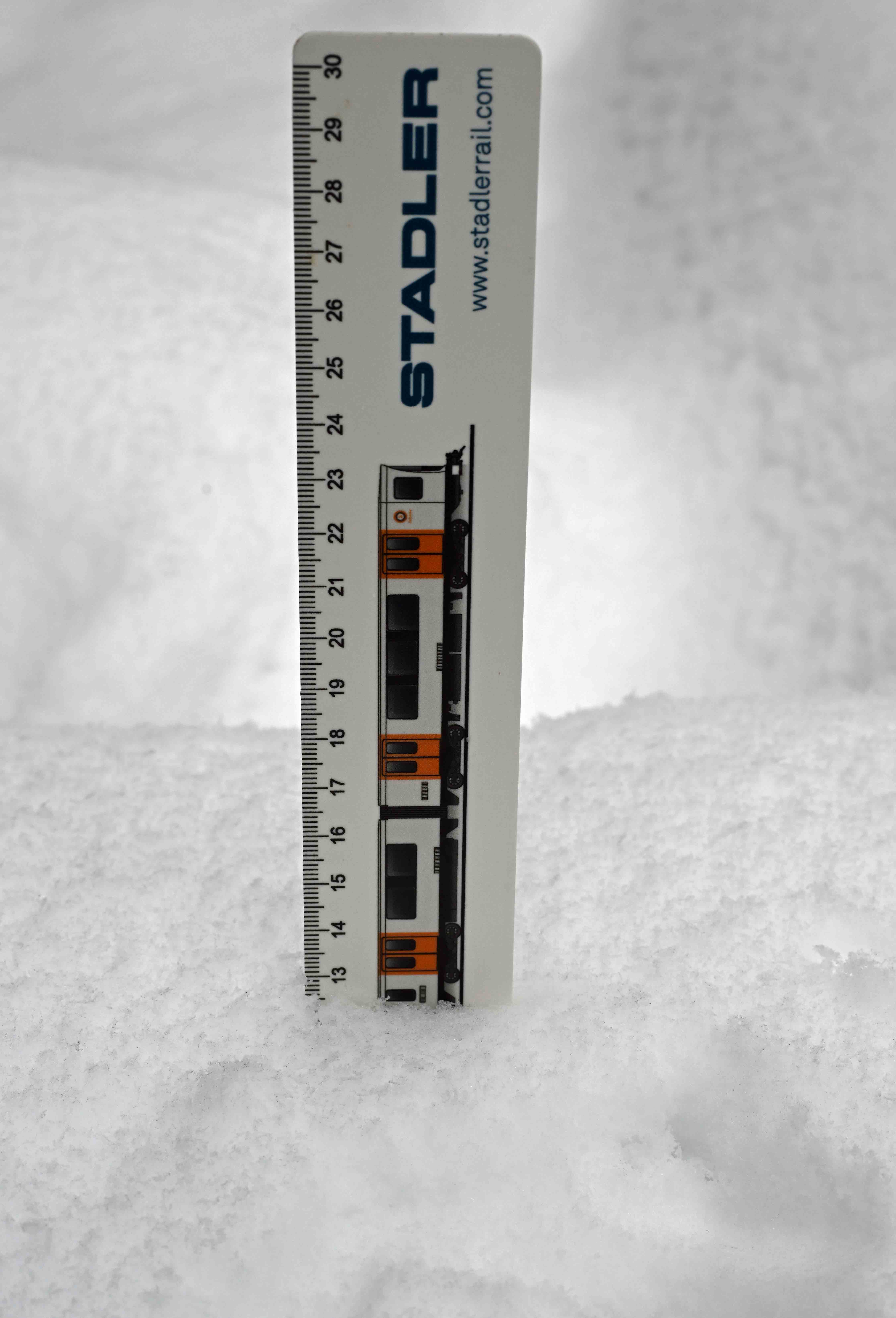 Later, having fortified myself with coffee I ventured out with the camera to get a few pictures. Firstly, I checked the depth of the snow on our front garden wall.