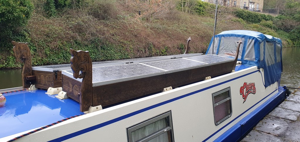 Storage is always at a premium on narrowboats but these boxes with solar-panel roofs are a nifty way of solving the problem – and decorative too!
