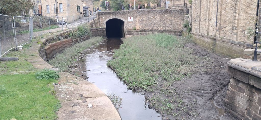 I did manage to get out for my daily constitutional by wandering down the valley into Sowerby Bridge in order to pick up some shopping, the first time I’ve visited the town since we’ve got back. Sadly, despite the opening of the refurbished market square the rest of the place seems to remain in decline. The number of vacant shops has increased, another pub appears to have closed (the ‘Sore Bee’. That’s two going now as the ‘Loose Goose’ is to be converted into HMOs, a laundrette and office space) and the canal remains closed to traffic due to low water levels. In fact, the Rochdale canal resembles more of a flowerbed with a water feature than a canal! Here’s a few camera-phone pictures from my excursion.