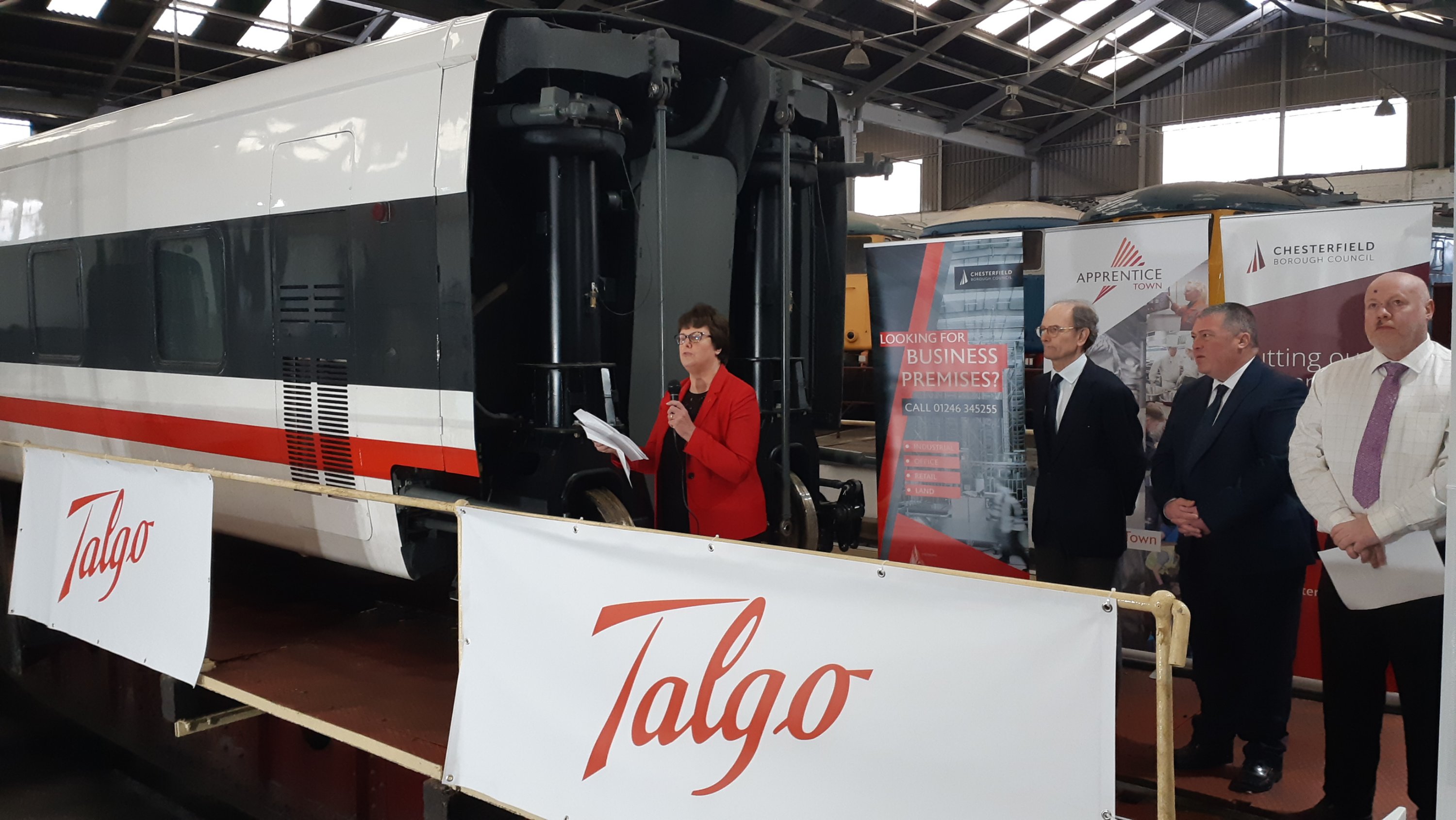 On Tuesday 28th January a rather special sort of train was put on display in the UK for the very first time. TALGO UK donated one of their very high-speed train vehicles to Chesterfield Borough Council to celebrate the company establishing its Head Office in Chesterfield and confirmed ambitions to develop an ‘Innovation Centre’, co-located with Barrow Hill roundhouse, where the TALGO train has gone on display.