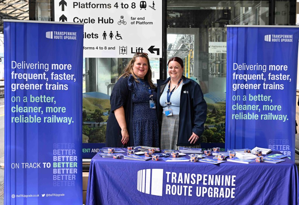 Now I’ve over an hour to wait, so I’ve retreated to the ‘Kings Head’ on the station for a beer and a chance to update this blog. In passing I saw that staff from the Trans-Pennine Route Upgrade (TRU) had set up an information stall on platform 1. As well as useful information leaflets they’d a range of freebies, from pens to jelly-babies. I snaffled a pen…
