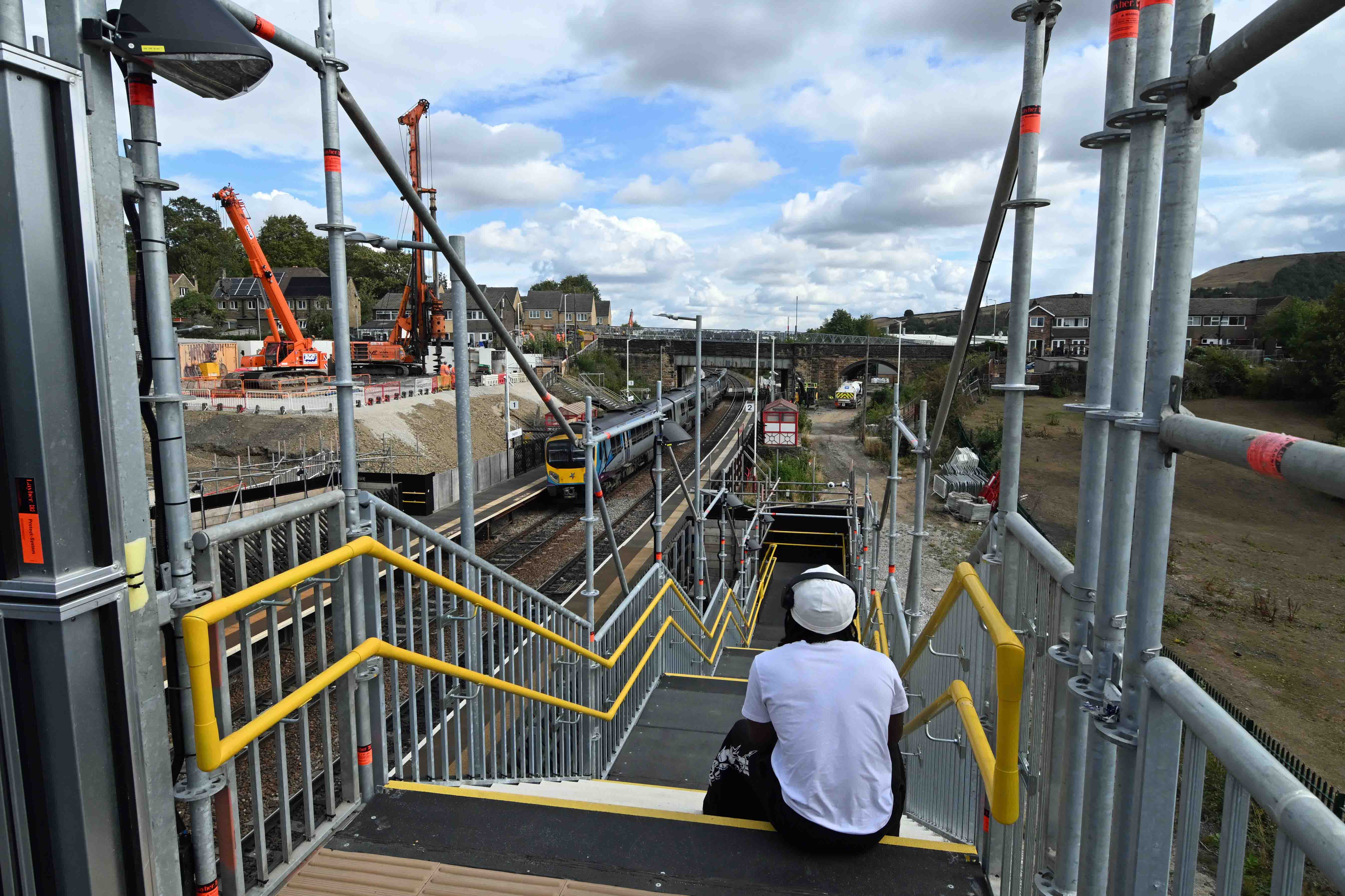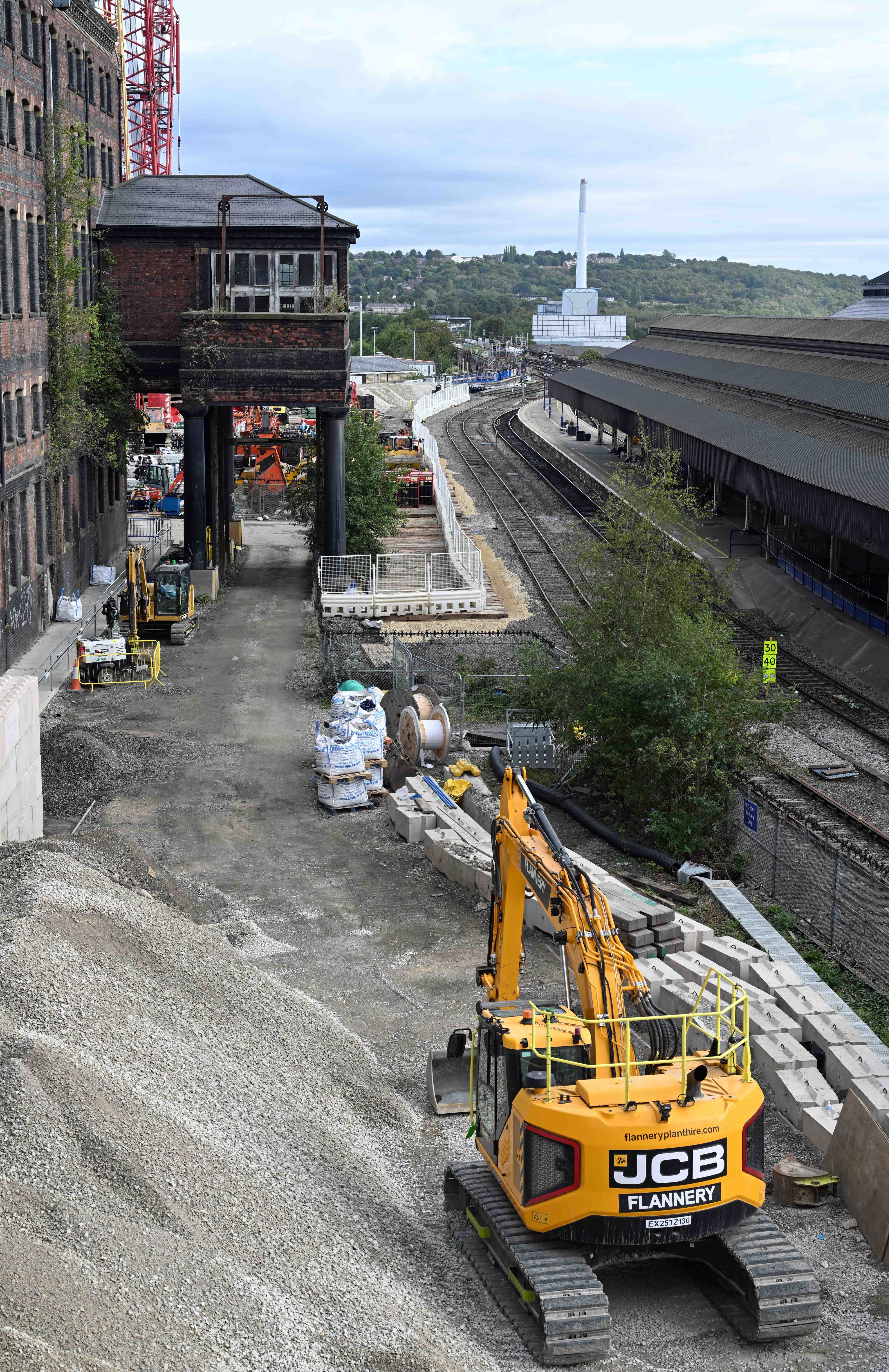 Friday’s weather turned fine for a change. Well, for most of the day, anyway. It gave me the opportunity to catch a train from Halifax to Brighouse in order to check out progress on The Trans-Pennine Route Upgrade (TRU) around Bradley, to the East of Huddersfield. The area contains Bradley Junction, where the Westward connection from Calder valley line from Brighouse joins the Trans-Pennine route, and also for me to explore closer to Heaton Lodge Junction, further East.